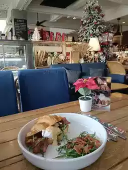 The cafe offers seating on two floors inside and outside. The food is French-style, with breads and various drinks. The cafe also serves breakfast, also known as brunch. If you're visiting Hua Hin, we highly recommend this place. It's a must-visit for everyone.