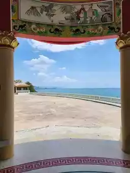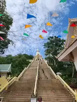 Wat Khao Takiab, perched majestically on a mountain, offers a reward for travelers like us. Upon reaching it, you'll not only pay homage to the sacred objects, but also be mesmerized by the panoramic view of Hua Hin Bay and the azure sea that stretches to the horizon, miraculously warding off the fatigue of driving.