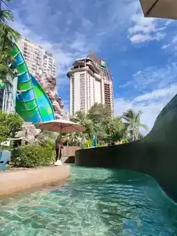 #VisitHuaHin Vana Nava Hua Hin is known as a world-class water park that combines fun and excitement. Highlights include giant slides of various styles, from thrilling spiral slides to long slides that feel like soaring through the air. There's also a wave zone and a large pool perfect for families. Children will have fun in the Kids Water Play zone, while those looking for a break can relax at the pool bar and lounge area. The surrounding atmosphere is decorated in a beautiful tropical garden, and there's music, food, and chic photo spots to complete the day's fun. Vana Nava is more than just a water park; it's a Hua Hin attraction that creates smiles and memories for all ages.
