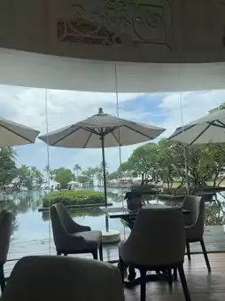 Photos 1️⃣-4️⃣: A seaside restaurant at the hotel. Despite the name Dusit Thani Hua Hin, the hotel is actually located in Cha-Am, known as "Qi Yan" in Chinese. It’s about a 20-30 minute drive from Hua Hin city, offering a quieter atmosphere. The hotel provides a 💰500🐷 voucher for check-in, which can be used at this restaurant for two people, covering food and drinks. The total cost is approximately 💰1,000-2,000🐷.