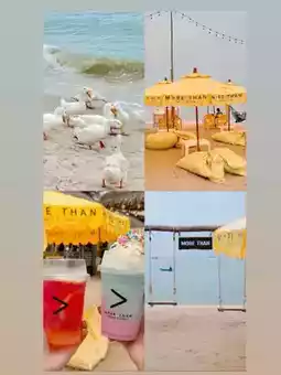 Everyone, today we're introducing MORE THAN Beach & Cafe, a super chill beachside cafe decorated in bright white and yellow tones.