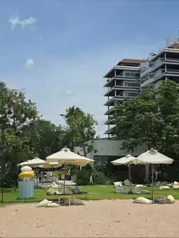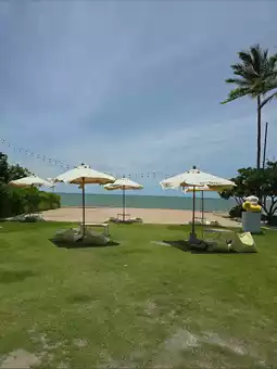 This restaurant is right on the beach, with both air-conditioned and outdoor seating. The outdoor seating might not be well-maintained, some of the cushions are worn, but it's still comfortable. Overall, it's okay, the price is reasonable, the atmosphere is good, and there are plenty of photo spots. There's plenty of parking!