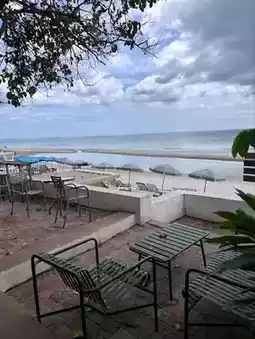 Beach/Balcony Seating: Mostly beach chairs and seats with a clear sea view.