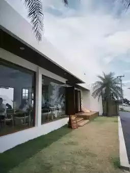 🌴 Summer Roof Cafe, a beachfront cafe in Pranburi, has a great atmosphere, right on the road and right by the sea, with nothing blocking the sea view. Enjoy a drink while sipping on your favorite beverage. The cafe offers both coffee and non-coffee drinks, as well as a selection of delicious cakes in the display case. We had a pudding, which was sweet and delicious. There's both indoor and air-conditioned seating, or outdoor seating with a sea breeze. There are plenty of photo opportunities, and plenty of angles to take photos.