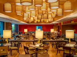 For dinner, try the Shabu set, featuring pork and seafood in a relaxed poolside atmosphere.