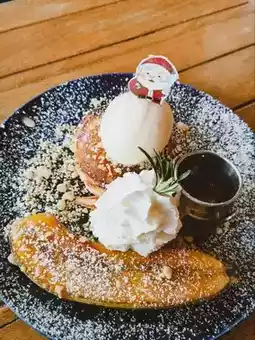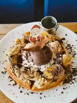 Their 🥗food, ☕drinks, 🍰cakes, and 🍩desserts are all delicious and perfect for the festive season (◍•ᴗ•◍). There are many photo spots from the front of the store to the food on the table, perfect for selfies. The cute tableware is also beautifully presented.