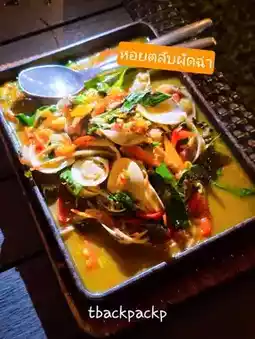 🌳🏡The restaurant has a great atmosphere, with live music to enjoy while waiting for our meal. We arrived at 7:00 PM, and it was already dark. We sat at tables on the lawn. The staff provided excellent service. There was a wide selection of seafood and Thai dishes. Among the delicious dishes for our table were the stir-fried cockles with chilli and salt and pepper shrimp. The ingredients were fresh and cooked to perfection. 🦞🐚🍲💡