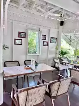 The cafe is a classic white wooden house, giving it a vintage, vacation-like feel. The menu features a blend of Thai and modern influences, and every dish is absolutely delicious.