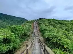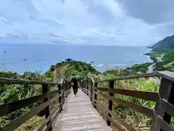 Dashibi Mountain has a hiking trail that loops around to the seaside. Most of the steps are made of wooden sleepers and stones, with gentle slopes that make for a comfortable walk. It takes less than an hour to complete the trail. At the summit, you can enjoy a panoramic view of Highway 11, Qizai Bay, and the Pacific Ocean. The view is excellent, but there's no shade, so it can get quite hot!