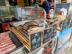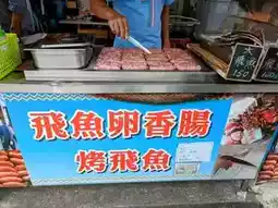 Across from the parking lot, there's a stall selling indigenous sausages. Our guide recommended the grilled flying fish roe sausages, so we bought some to try. They have a unique sea flavor and are quite delicious.