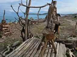 These works include large-scale professional creations made of driftwood, such as bean-shaped pirate ships and owls, which showcase the artist's ingenuity and craftsmanship.