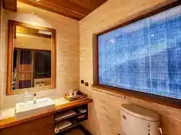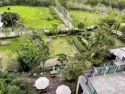 One of the hotel's most captivating features is its expansive landscaped garden. Spanning 700 pings (approximately 2,310 square meters), the garden offers a serene retreat where guests can admire the layered hues of the mountains during the day and listen to the symphony of insect sounds at night, providing a truly relaxing experience.
