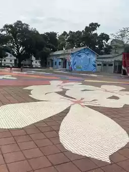 The spacious Tung Blossom Plaza provides a great area for children and families to play.