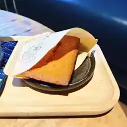 The financier has a slightly moist texture with a subtle aroma, perfectly paired with the iced Americano and the books from the owner's shelves. Truly enjoying this peaceful afternoon.