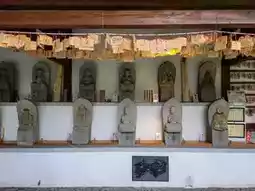 • Features typical Japanese temple architecture: wooden structures, pebble stone ponds, ema walls, Buddha halls, and small shrines, creating a tranquil and serene atmosphere.