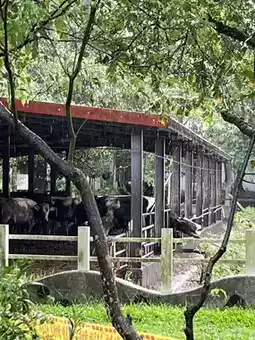 The ranch is not big, but it is very clean and tidy. The rain was too heavy, and most of the dairy cows huddled in the shed to avoid the rain, only showing their wet noses to observe us "They are looking at us!"🤎