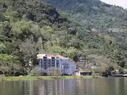 Occasionally, water birds flit gently across the lake, or schools of fish swim leisurely underwater, adding to the vibrant and playful atmosphere. As the boat reaches the center of the lake, the view widens. The surrounding lush green mountains cascade, the lake's light and mountain shadows blend together to create a natural painting. Slowing down the boat and quietly appreciating the scenery, travelers relax, their minds seemingly washed away by the water.