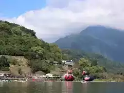 Carp Lake in Shoufeng, Hualien, is a turquoise lake nestled among lush green mountains. The most captivating way to experience it is to take a boat and drift gently across its surface. As soon as the boat leaves the dock, a gentle breeze caresses the water, creating delicate ripples. The mountain reflections are reflected in the water, and it's as if the entire world has fallen silent, with only the echoing sounds of water and wind.