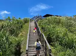Dashibi Mountain is located at the southern end of the Qizai Coastal Recreation Area. This small hill, also known as "Turtle Hermitage Mountain," juts out along the coastline. The hiking trail is well-designed, featuring mileage markers and pavilions along the way. Most of the steps are made of wooden sleepers and stones, with gentle elevation changes, making it a comfortable walk. On a sunny day, you can enjoy stunning views of Qizai Bay and the vast blue Pacific Ocean—truly a feast for the eyes 🥰