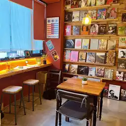 While shopping, I discovered a hidden second-floor cafe. It's quite mysterious, going up the stairs next to the storefront. It's quite unique, with a wall of books and CDs. The space isn't too big, but it's quite quiet. The cafe is packed with students studying. Drinks are available for a limited time, so there's no time limit. It's a perfect place to relax and read. This unique and mysterious second-floor cafe is a perfect place to spend the entire day. #coffee #dessert