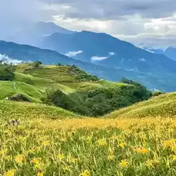 Located in Zhutian Village, Fuli Township, Hualien County, Taiwan, Sixty Stone Mountain offers a summer escape at an altitude of approximately 700-900 meters. It is also famous for its sea of daylilies blanketing the mountain. August and September are the perfect time for daylily viewing.