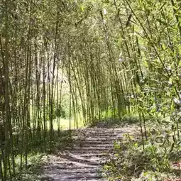 Sunlight filters through the bamboo leaves, creating a green tunnel of light and shadow—a paradise for photography enthusiasts. You can also catch a distant view of the Luoshan Waterfall.