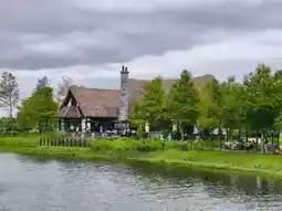 A Starbucks by the lake, the scenery feels as if you're in Europe,