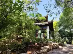 Yi'ai Pavilion is hidden in the dense forest on the hillside opposite Qingfeng Ferry. Behind the hillside is the Su Dongpo Memorial Hall. In front of the memorial hall is a large square, at the end of which stands a tall statue of Su Dongpo.