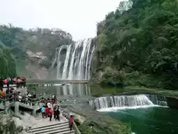 Huangguoshu Waterfall stands as one of the world's most magnificent waterfalls. Its main cascade surges with immense power, thundering down like a silver galaxy pouring from the sky. Surrounded by lush karst peaks and steep cliffs, the scene showcases the distinctive charm of the region's geological landscape.