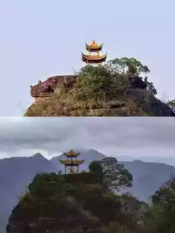 3. **Afternoon**: **Xuantian Taisu Palace** (main hall worship) → **Yuxu Palace** (cliffside coffin wonder) → **Wulao Peak** (view of Danxia peaks) → **Xiaohu Tian** (serene viewing platform) → Cable car down.