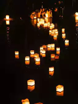 2. River lantern blessing ceremony: Hundreds of lanterns illuminating the stream✨