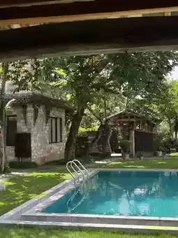 🏊♀️ The designer cleverly added an outdoor pool and gauze-draped pavilions
