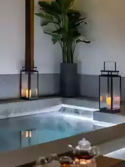 🛁 Modern courtyards: private hot springs + terrace bathtubs
