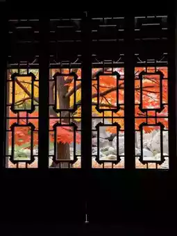 Red leaves, white walls, black tiles, morning mist... all unbelievably beautiful!