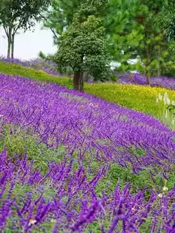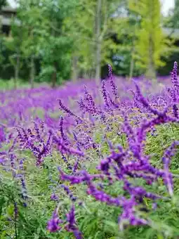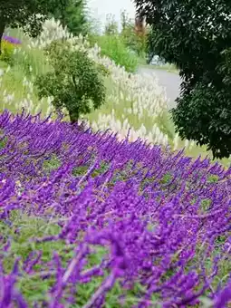 A light breeze passes, gently swaying the slender flower spikes, the purple waves surging full of tender poetry.