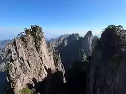 Huangshan on a clear day is as breathtaking as a heavenly paradise amidst the mountains. The deep blue sky contrasts beautifully with the light gray granite peaks that majestically rise above the sea of clouds. Warm sunlight touches the clouds and ancient pines bending along the cliffs, creating shimmering shadows reminiscent of a Chinese painting. Visitors can enjoy a panoramic view stretching to the horizon, including the majestic Lotus Peak, evoking a sense of nature's grandeur and tranquility. A clear day at Huangshan is undoubtedly the most beautiful time to visit this mountain.
