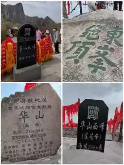 Huashan Gate (Yuquanyuan) - North Peak (1612 meters above sea level) - East Peak (2096 meters above sea level) - South Peak (2154 meters above sea level) - West Peak (2082 meters above sea level)