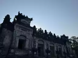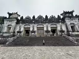 Climbing the stone steps, you’re greeted by stone statues of guards and mandarins, lined up in quiet formation. Inside, the real treasure awaits: the intricately decorated main hall, where walls and ceilings are covered in vibrant glass and porcelain mosaics. The detail is stunning, especially the ornate ceiling above the emperor’s tomb.