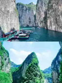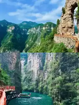2. Route B (Counterclockwise · Photography preferred): For photography enthusiasts, this route is a great choice. From the entrance, take the sightseeing elevator up the mountain, then visit the Jade Emperor Pavilion, take the cable car down, walk along a section of the walkway, and finally take the boat back to the exit. The advantage of this route is fewer people and softer light in the morning, with the gorge water showing a bright green color, perfect for stunning photos. However, it takes about 4.5 hours and involves more uphill walking, requiring more physical strength.