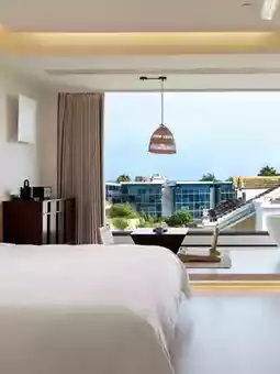 The homestay features modern design with a courtyard decorated with greenery. The rooms are spacious and bright, with a strong sense of design and brand-new, shiny facilities✨ The sea view rooms offer great views—you can watch the sea right from your bed; plus, there’s a XGIMI 4K projector and Marshall speakers, perfect for lying back to watch movies and listen to music at night, maximizing your vacation relaxation~