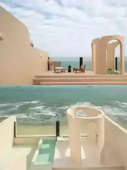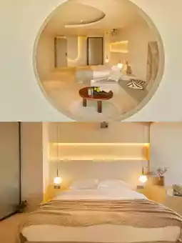 [Mosque] B&B is located in Shuangyue Bay, Huizhou, facing the sea. The warm-toned buildings are set against the blue sea. The quiet seaside is only accompanied by the sound of waves. Sitting in front of the public area window, time seems to be frozen at this moment.