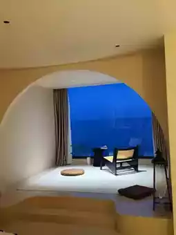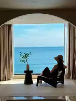 The room has a sea view and panoramic floor-to-ceiling windows😍