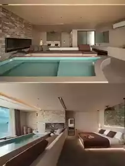 🌵The room is well-equipped, with a large hot spring pool by the window. It's great to soak in the hot spring while watching the sea. There's also a large screen projector for watching movies, a bathtub, and disposable toiletries.