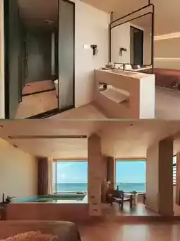 To be honest, the navigation was about to reach the end. When it entered a small road, I was a little worried that I might step on a landmine. However, it turned out to be so beautiful that I couldn't bear to check out. Each room faces the sea, with panoramic floor-to-ceiling windows, and an unobstructed view of the sea. The room is equipped with a hot tub. Taking a bath while watching the sea satisfies all your imaginations of beauty and romance. The beach is right downstairs. Many people set off fireworks on the beach at night, so you can enjoy the sea view and fireworks in the hot spring. Another highlight is that it is very convenient to watch the sunrise. All rooms face east. Just set the alarm clock and open the curtains at the right time, and you will see the gentle sunrise. However, there were too many clouds on the day we stayed, blocking the sun and we were unable to enjoy the best views.