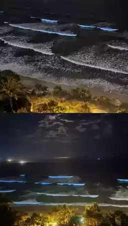 *Vargula hilgendorfii*, a luminous sprite in the ocean🌊, emits a light blue glow when stimulated by waves💡. When they gather, it's like a blue Milky Way reflected on the sea.