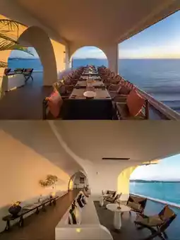 The dining bar on the 10th and 11th floors is integrated with the sea and coastline with linear design.