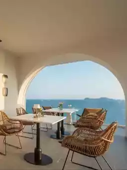 The white cave leads directly to the entrance of the sea, showing the Mediterranean style.
