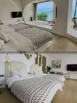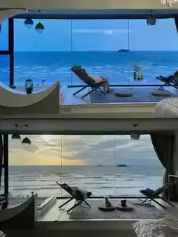 Prime location with the beach 🏖️ right downstairs, just a 2-minute walk to the shore. The floor-to-ceiling windows 🪟 let you enjoy sunrise 🌅 and sunset 🌅 from bed, making you feel like you own a private beach 🏖. E-bikes 🛵 are available for rent to explore nearby scenic spots 🚴. Fall asleep to the soothing sound of ocean waves 🌊 for a restful night.
