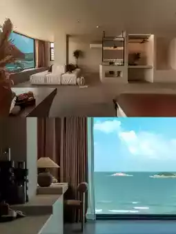 The homestay is perfectly located in Twin Moon Bay, with the beach just steps away. The floor-to-ceiling windows in the room frame the endless ocean like a natural painting. In the morning, the first rays of sunlight gently wake you up, and youâre greeted by the sparkling seaâitâs pure therapy đ