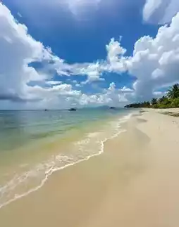 - Few visitors on weekdays in September, white sand as fine as sugar, aerial shots show Tiffany blue gradient sea